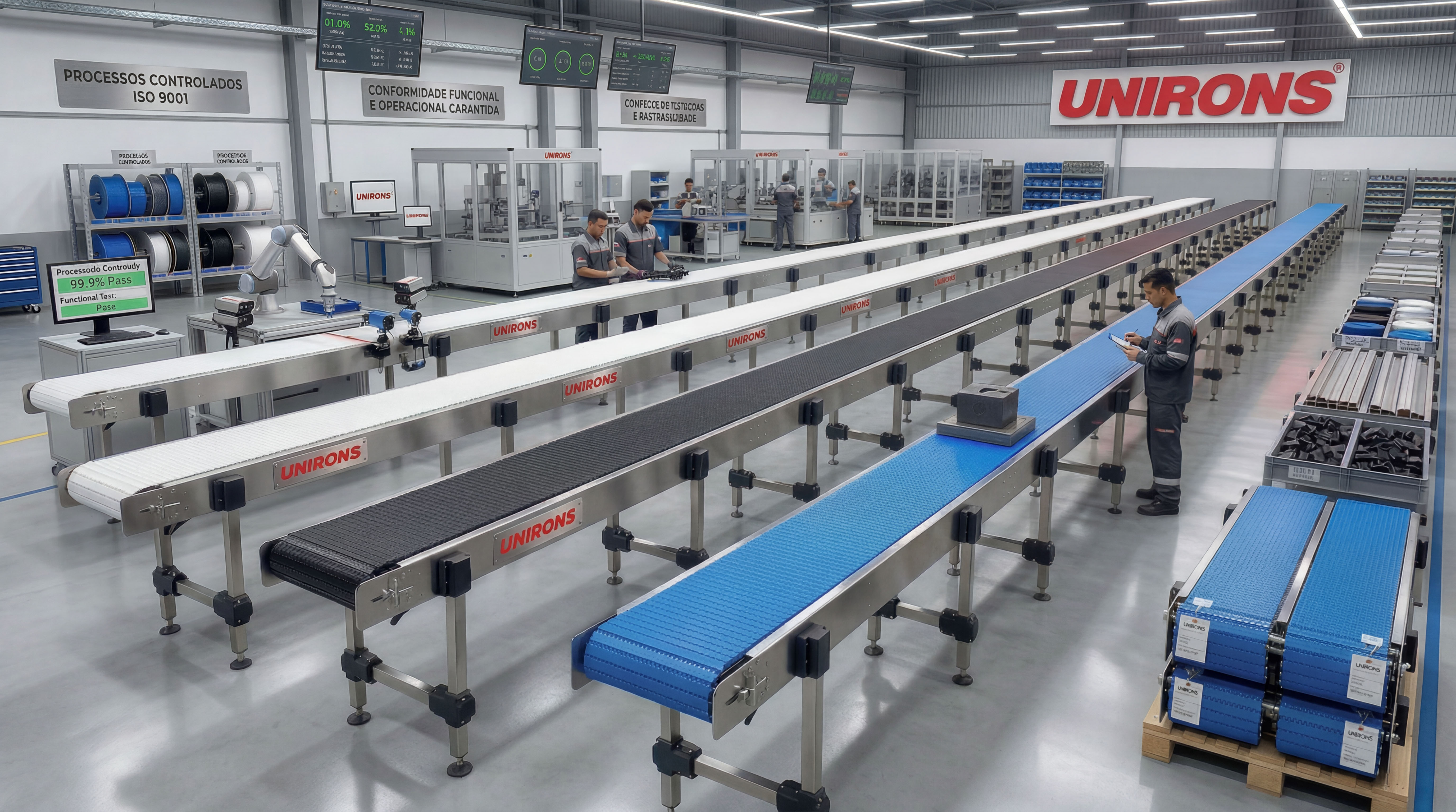 Baseada no conceito de engenharia aplicada, cada solução desenvolvida pela Unirons é dimensionada conforme as condições reais de operação do cliente, considerando variáveis como carga transportada, ambiente produtivo, regime de trabalho e requisitos sanitários. Esse método garante maior precisão técnica no desenvolvimento dos sistemas e desempenho consistente em campo.